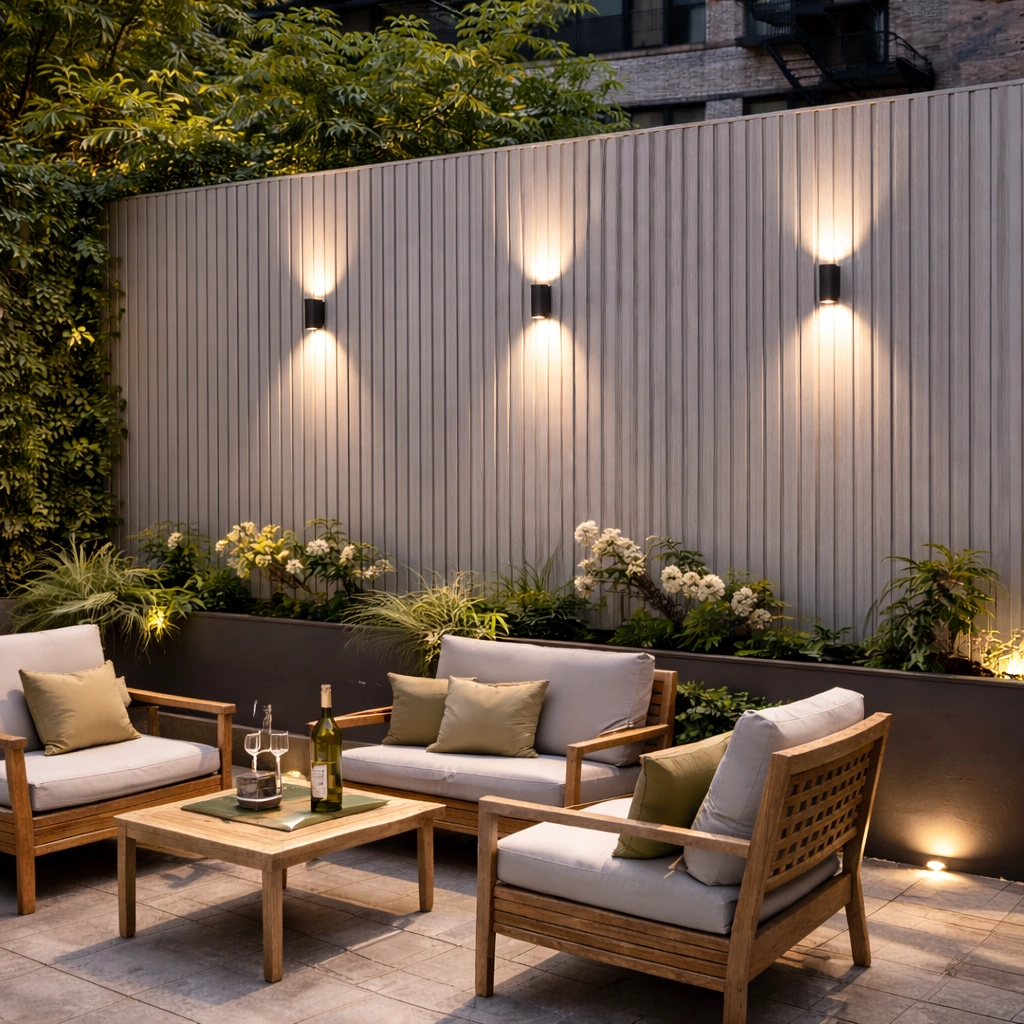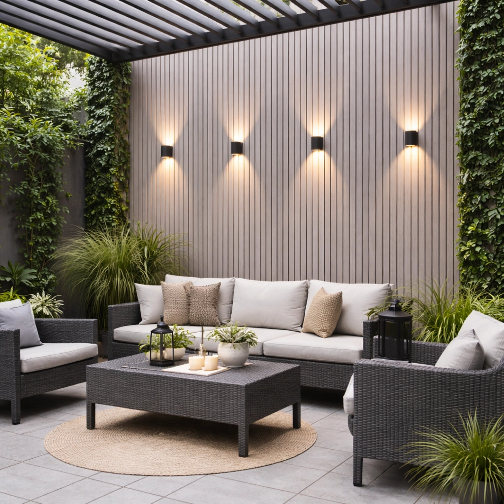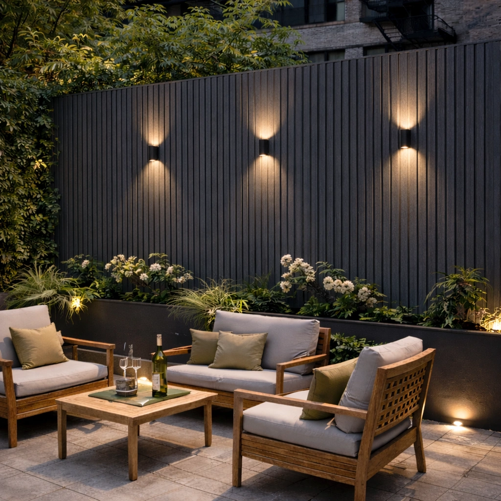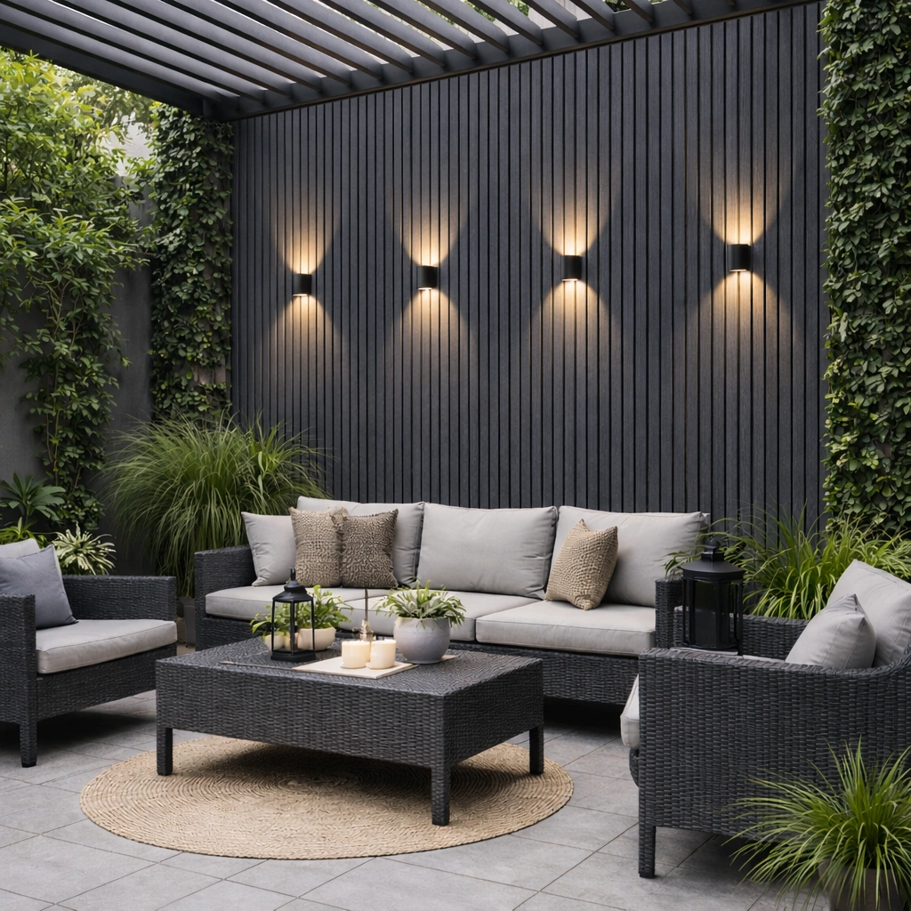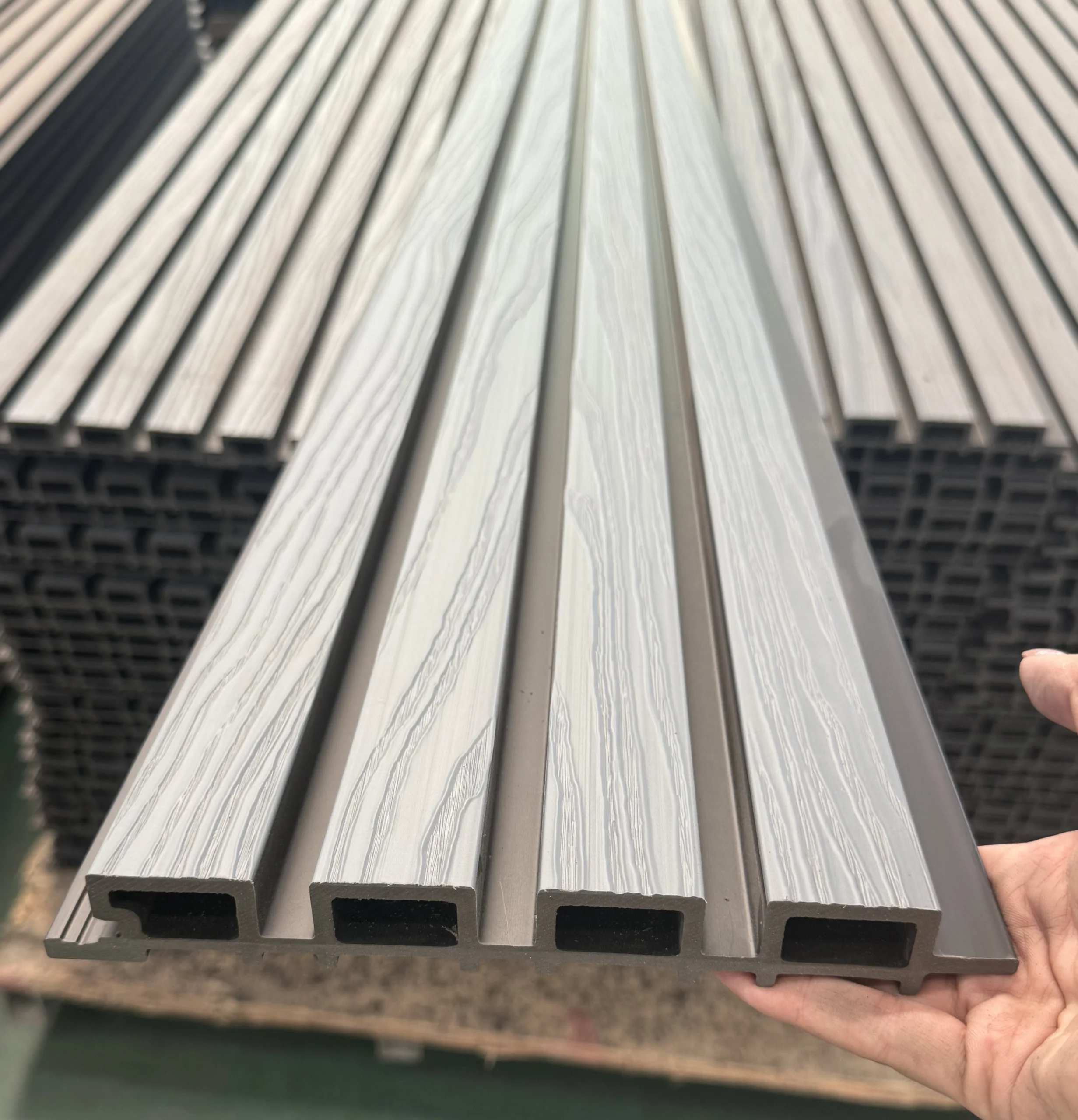 • WPC āra panelis ar modernu līstu reljefu – fasādēm, žogiem, vārtiem un dekoratīvām sienām. Kompozītmateriāls izskatās kā koks, bet ir piemērots āra apstākļiem un neprasa regulāru krāsošanu.